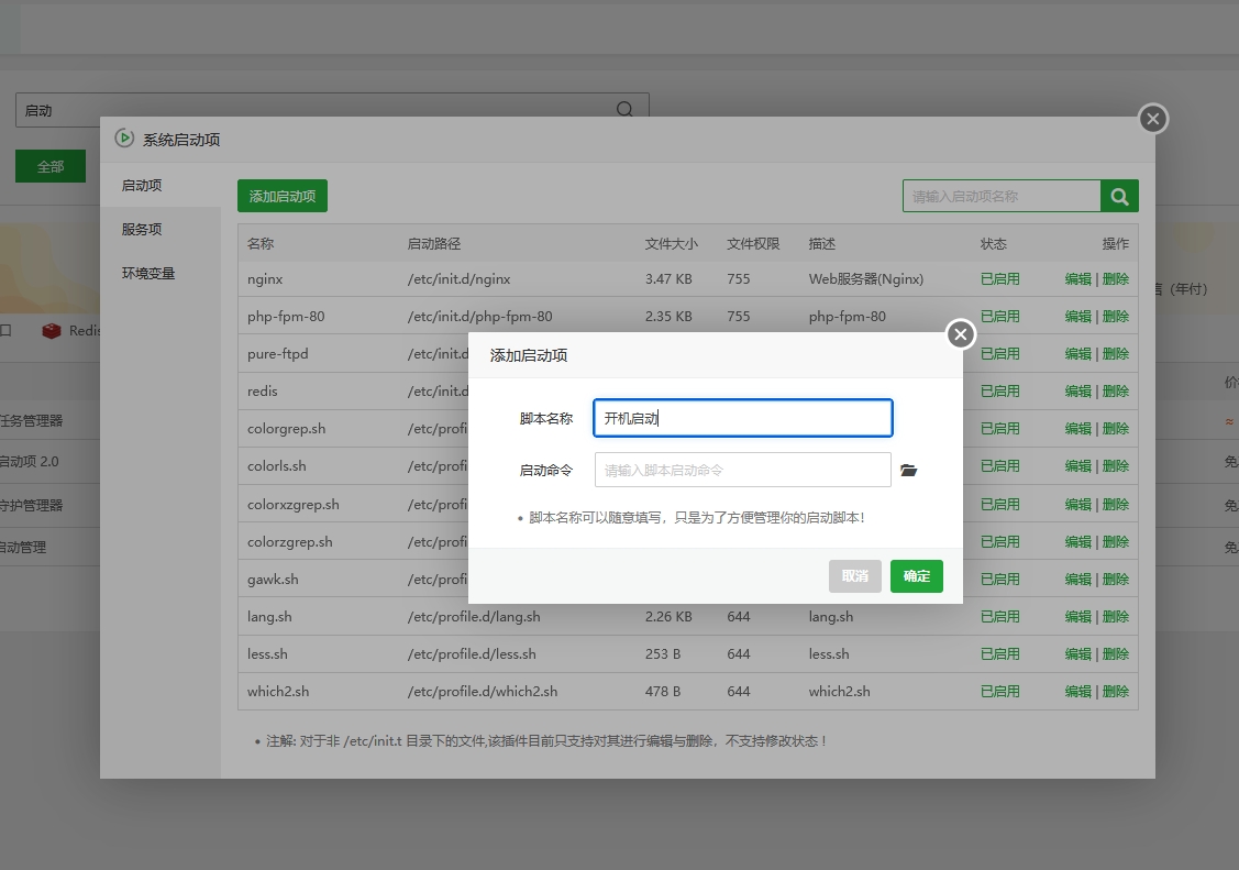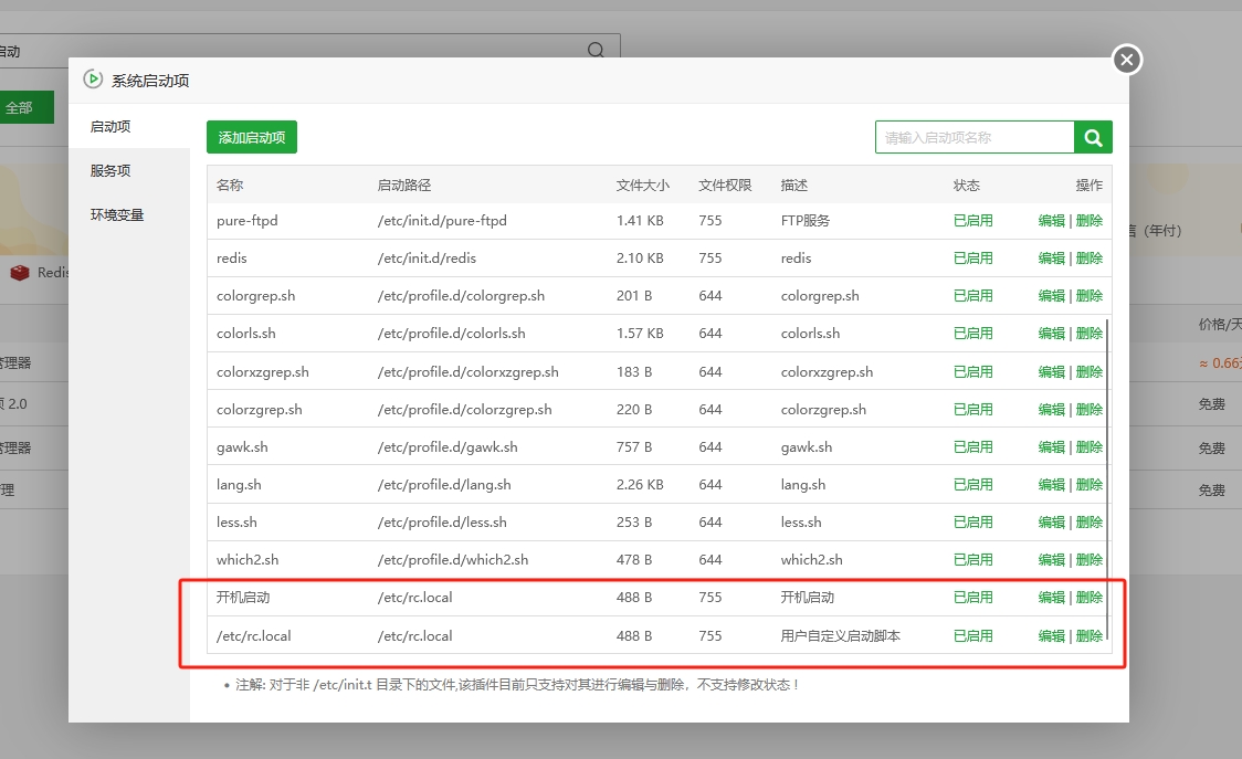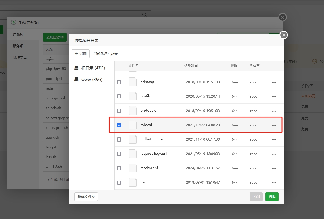 二 脚本名称任意填写,在启动命令中输入 /ect/rc.local 或者点击旁边文件夹图标,进入对应目录选择启动文件